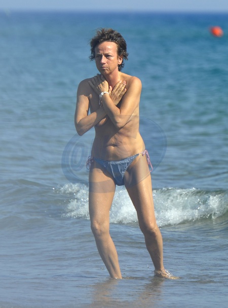Wloska piosenkarka Gianna Nannini z synem na plazy, Italia