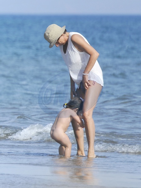 Wloska piosenkarka Gianna Nannini z synem na plazy, Italia
