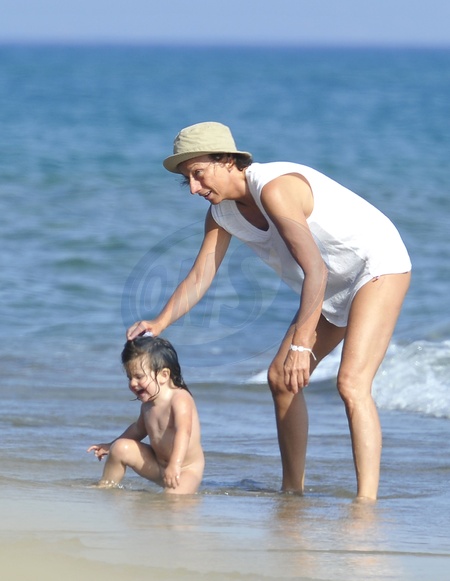 Wloska piosenkarka Gianna Nannini z synem na plazy, Italia