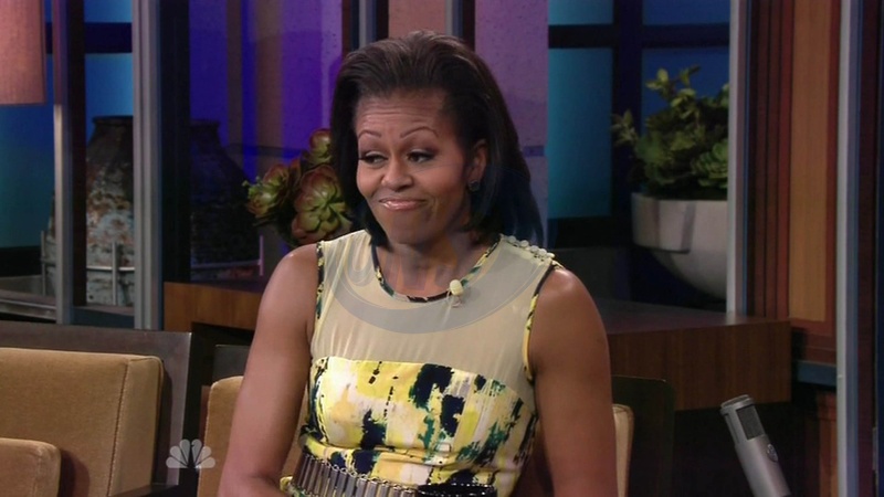 Michelle Obama i zlota medalistka Gabby Douglas w telewizyjnym show, Los Angeles