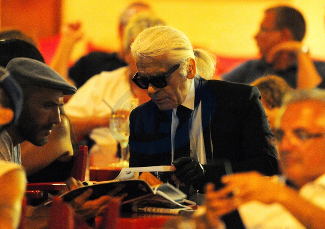 Karl Lagerfeld w pubie w Saint Tropez