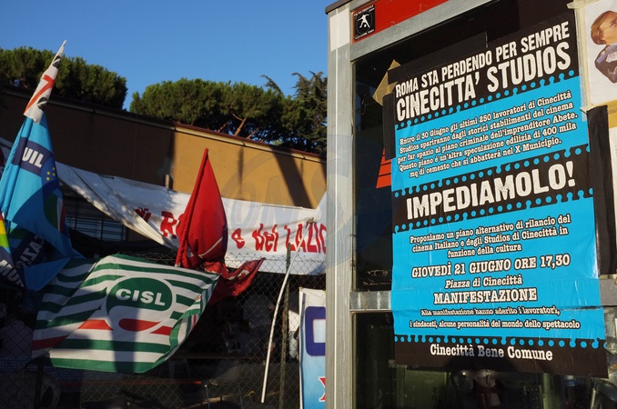 Strajkuja pracownicy wloskiego studia filmowego CINECITTA, Rzym