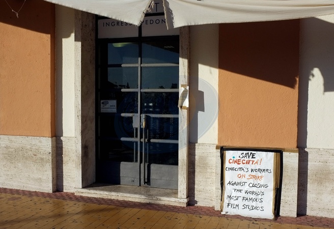 Strajkuja pracownicy wloskiego studia filmowego CINECITTA, Rzym