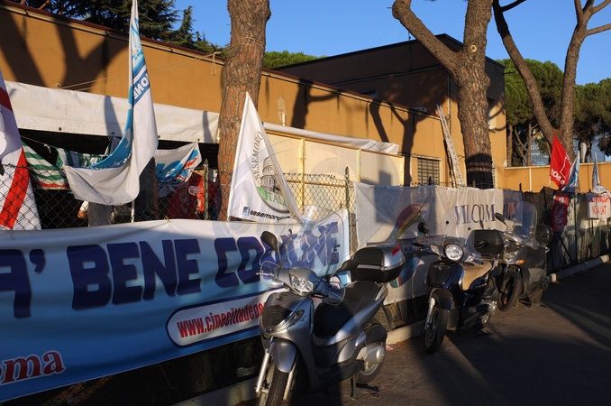 Strajkuja pracownicy wloskiego studia filmowego CINECITTA, Rzym