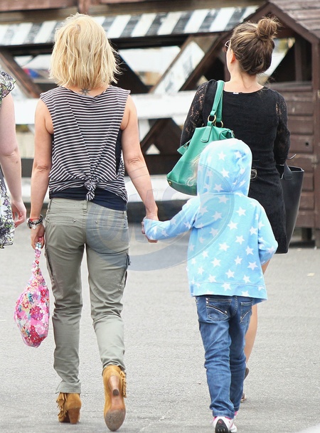 Geri Halliwell z corka w parku rozrywki Thorpe, Londyn