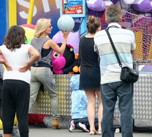 Geri Halliwell z corka w parku rozrywki Thorpe, Londyn