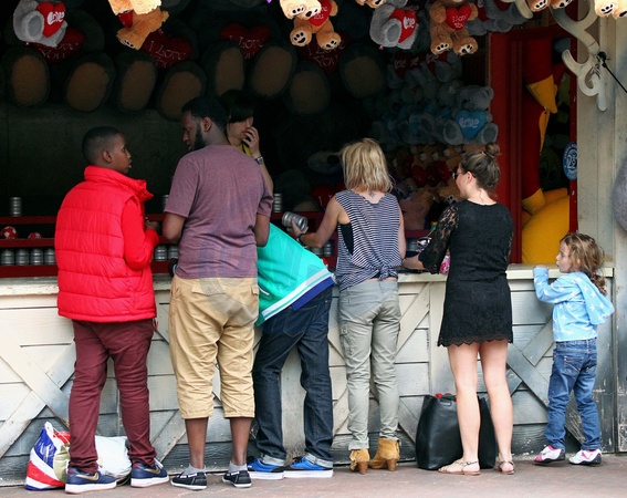 Geri Halliwell z corka w parku rozrywki Thorpe, Londyn