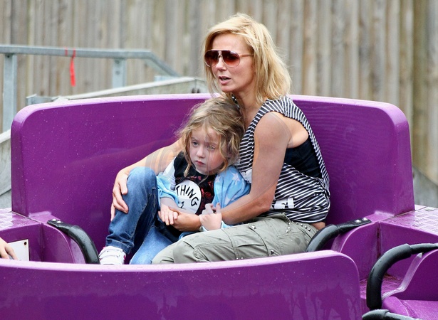 Geri Halliwell z corka w parku rozrywki Thorpe, Londyn