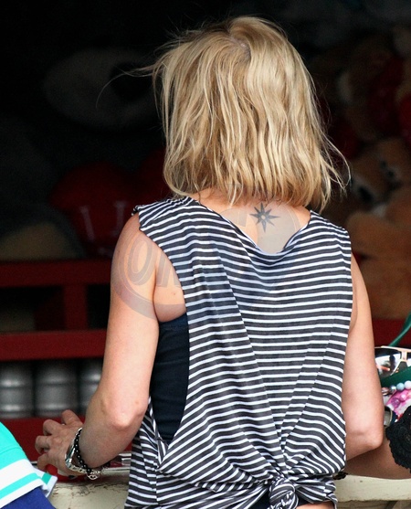 Geri Halliwell z corka w parku rozrywki Thorpe, Londyn