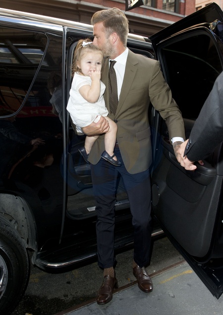 Victoria Beckham z rodzina przybyla na Victoria's Fashion Show, Nowy Jork
