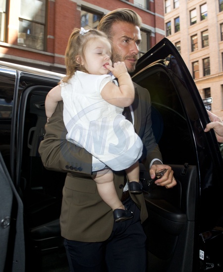 Victoria Beckham z rodzina przybyla na Victoria's Fashion Show, Nowy Jork