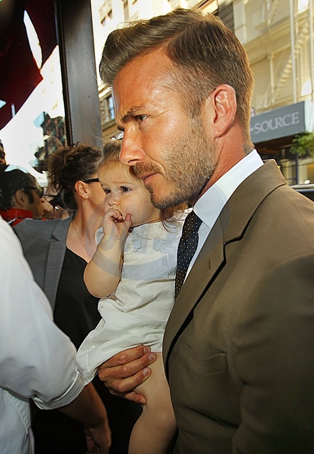 Victoria Beckham z rodzina przybyla na Victoria's Fashion Show, Nowy Jork