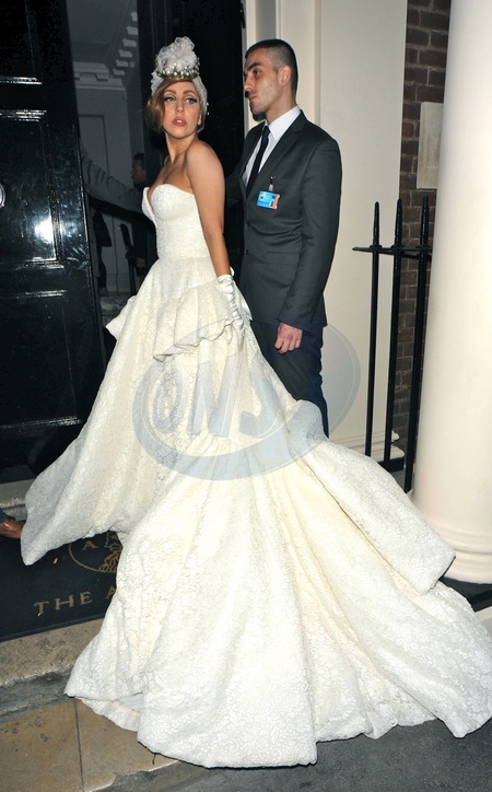 Lady Gaga w sukni slubnej przybyla do klubu Art, Londyn