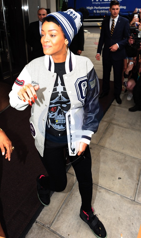 Rihanna z mama wychodzi z hotelu w Londynie