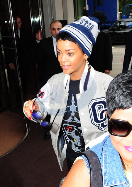 Rihanna z mama wychodzi z hotelu w Londynie
