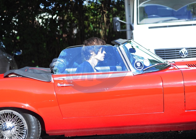 Harry Styles z zespolu One Direction na przejazdzce nowym Jaguarem, Londyn
