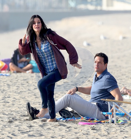 Courtney Cox i Josh Hopkins na planie Cougar Town, Santa Monica