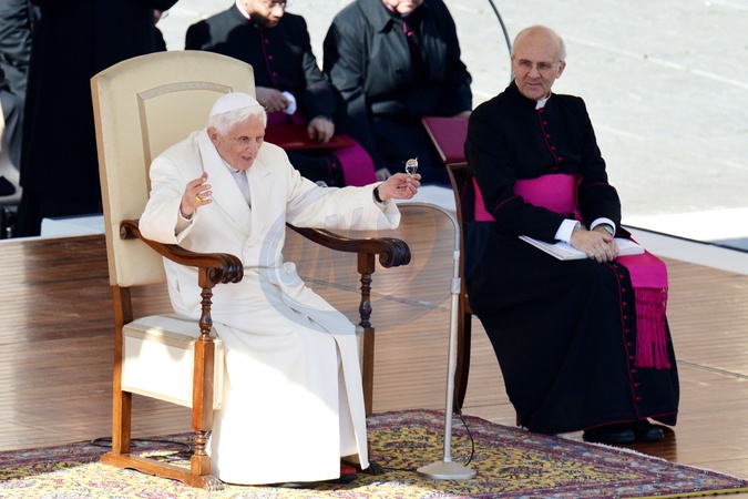 Papiez Benedykt XVI na Placu Swietego Piotra w Watykanie