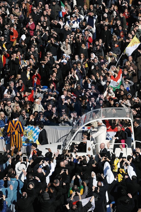 Papiez Benedykt XVI na Placu Swietego Piotra w Watykanie
