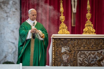 Pope Leo XIV celebrates a mass for the Jubilee of the Missionary World and Migrants in St. Peter's Square in Vatican City, Vatican, on 05 October 2025.