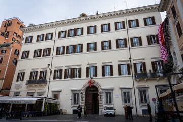 Flowers and flags at half-mast in mourning at Valentino's headquarters, the day after the passing of designer Valentino Garavani, aged 93, in Rome, Italy, on 20 January 2026.