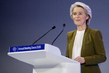 Ursula von der Leyen, President of the European Commission speaks at the World Economic Forum Annual Meeting 2026