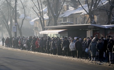 Queues form at bus stops on Kyiv’s Left Bank