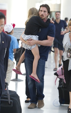 Christian Bale z corka na lotnisku, Nowy Jork