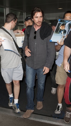 Christian Bale z rodzina na lotnisku, Nowy Jork