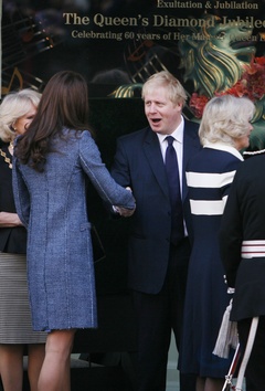 Krolowa Elzbieta II, ksiezna Camilla i ksiezna Kate podczas wizyty w sklepie Fort and Mason, Londyn