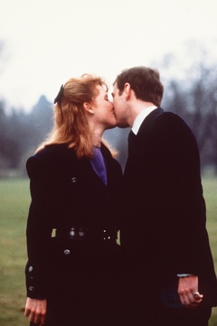 Pinning Pilot's wings on his wife HRH THE DUCHESS OF YORK after she received her Helicopter Pilot's Licence at RAF Benson