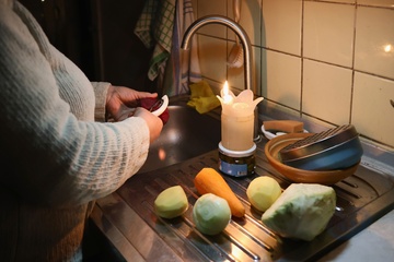 Kyiv residents warm up and cook foodon open flames amid blackouts