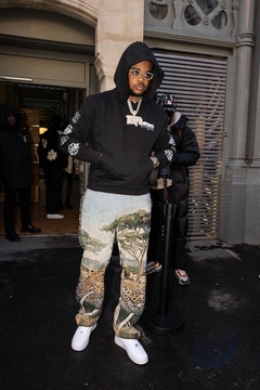 Gwiazdy przy wyjściu z pokazu Amiri „Jesień/Zima 2024-2025 Ready-to-Wear Collection” podczas Tygodnia Mody w Paryżu