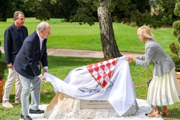 Książę Albert II z Monako podczas odsłonięcia kamienia pamiątkowego Henryka Reya w klubie golfowym Monte-Carlo w Monako.
