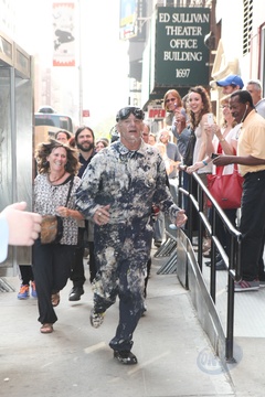 Bill Murray w brudnym kombinezonie przybyl do Show Lettermana, Nowy Jork