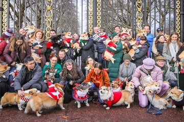 Corgi Christmas Jumper Walk in London, UK