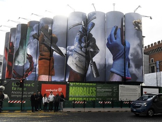 Tools by Elisabetta Benassi. A new work on the silos at the Metro C construction site.