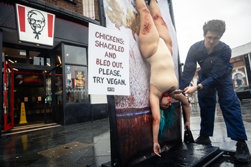 PETA suspends protester during animal rights protest outside KFC in London, UK, on 21 January 2026