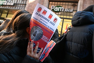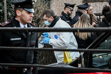 Pope Leo XIV delivers his blessing as he recites the Angelus noon prayer from the window of his studio overlooking St. Peter's Square in Vatican City, Vatican, on 01 January 2026.