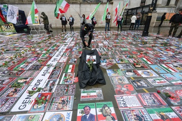 Memorial for victims of Iranian government in Trafalgar Square in London, UK, on 07 February 2026