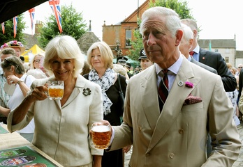 Ksiaze Karol i Camilla pija podczas wizyty w Rutland