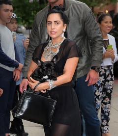 Lady Gaga w odwaznym spodnium z pupilem w Nowym Jorku