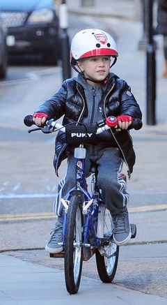 Lukasz Podolski z synem na rowerach, Londyn