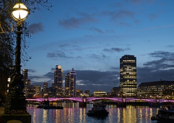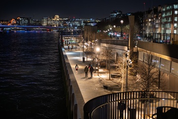 Bazalgette Embankment,adjacent to Victoria Embankment by Blackfriars bridge on the River Thames,a new piece of reclaimed land that hides the Tideway tunnel beneath.
