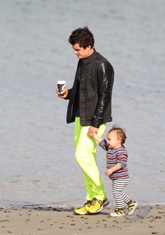 Orlando Bloom z synkiem na plazy w Wellington, Nowej Zelandia