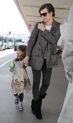 Milla Jovovich z corka na lotnisku w Los Angeles