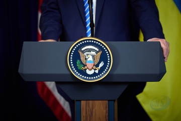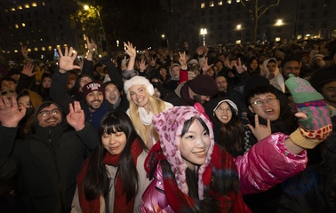 Pope Leo XIV delivers his blessing as he recites the Angelus noon prayer from the window of his studio overlooking St. Peter's Square in Vatican City, Vatican, on 01 January 2026.
