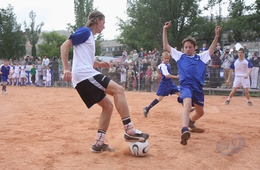 Ebi Smolarek w pokazowym meczu z dziecmi na warszawskiej Pradze, Warszawa 2008
