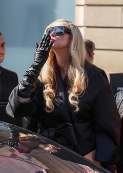 Przyjazdy na pokaz gotowych do noszenia kolekcji mody Guess na jesień/zimę 2025-2026 podczas Paris Fashion Week (PFW) w Hôtel de Camaran