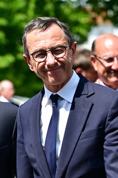 Bruno Retailleau i Nicolas Sarkozy podczas hołdu Aurélie Fouquet w Villiers-sur-Marne